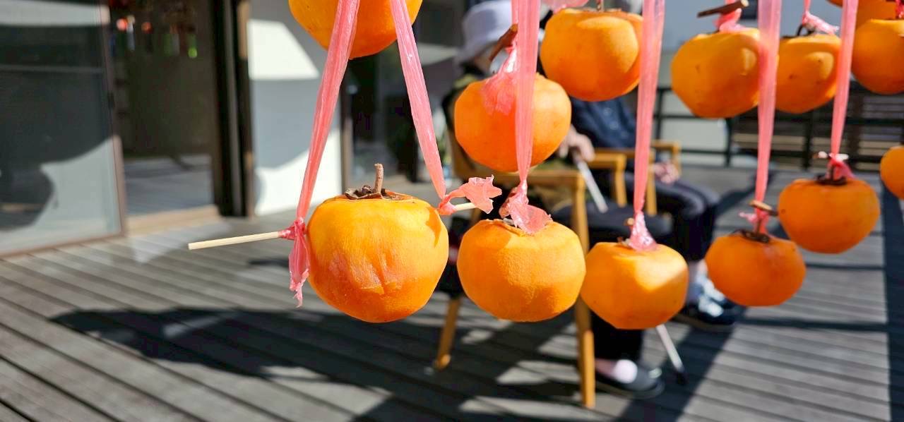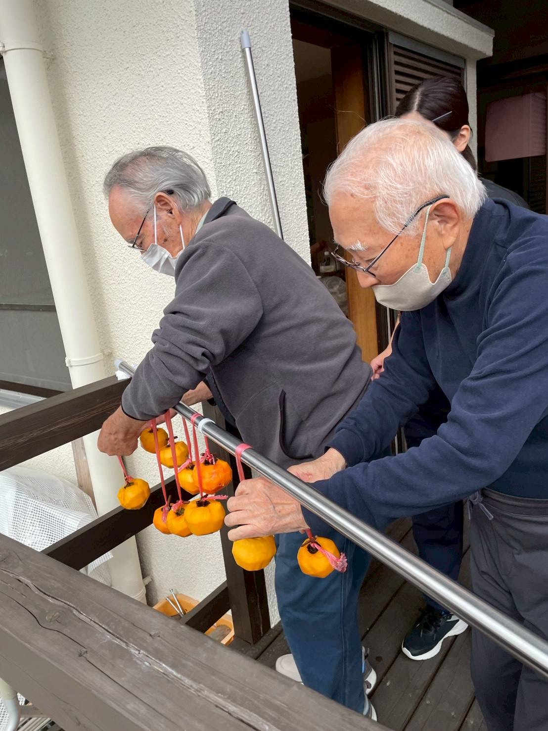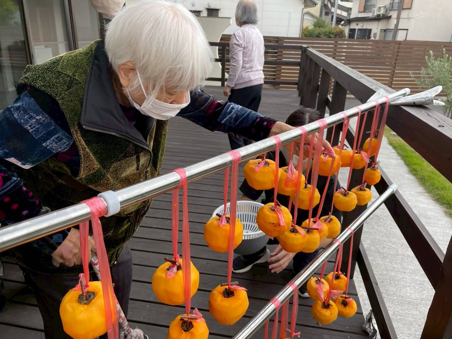 出来る事の役割を持つ事で柿を吊るすことが出来ました