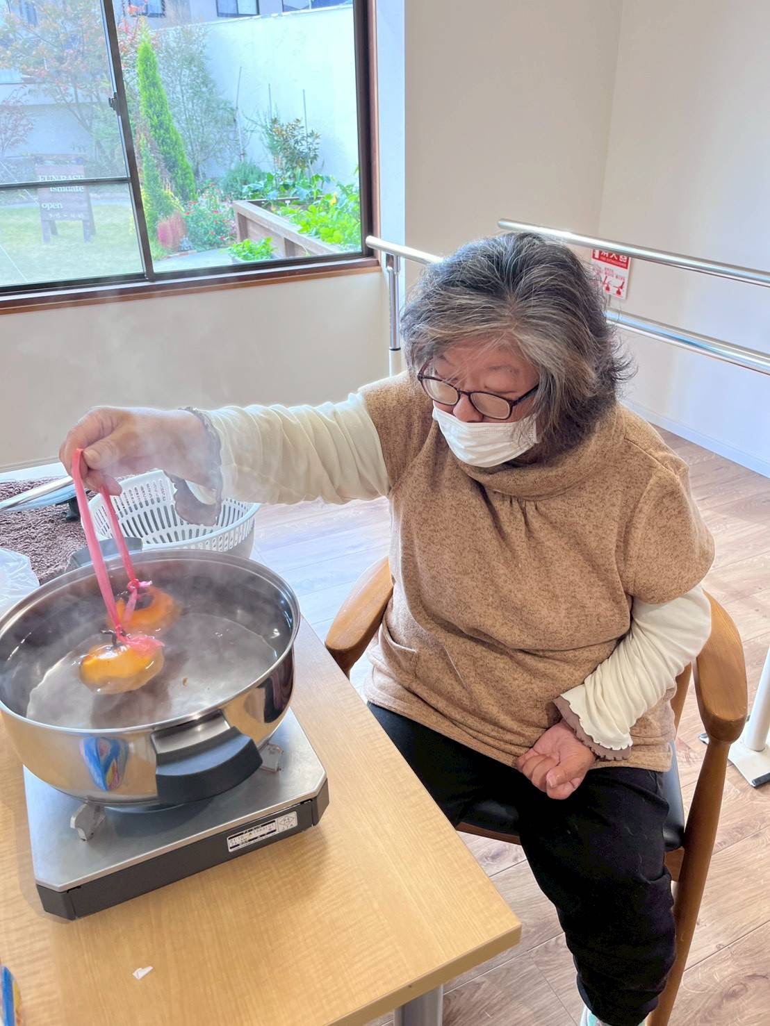 途中柿のヘタが外れるハプニングも起きましたが、知恵を出し合い、竹串で刺して紐でくくり吊るす事が出来ました👏