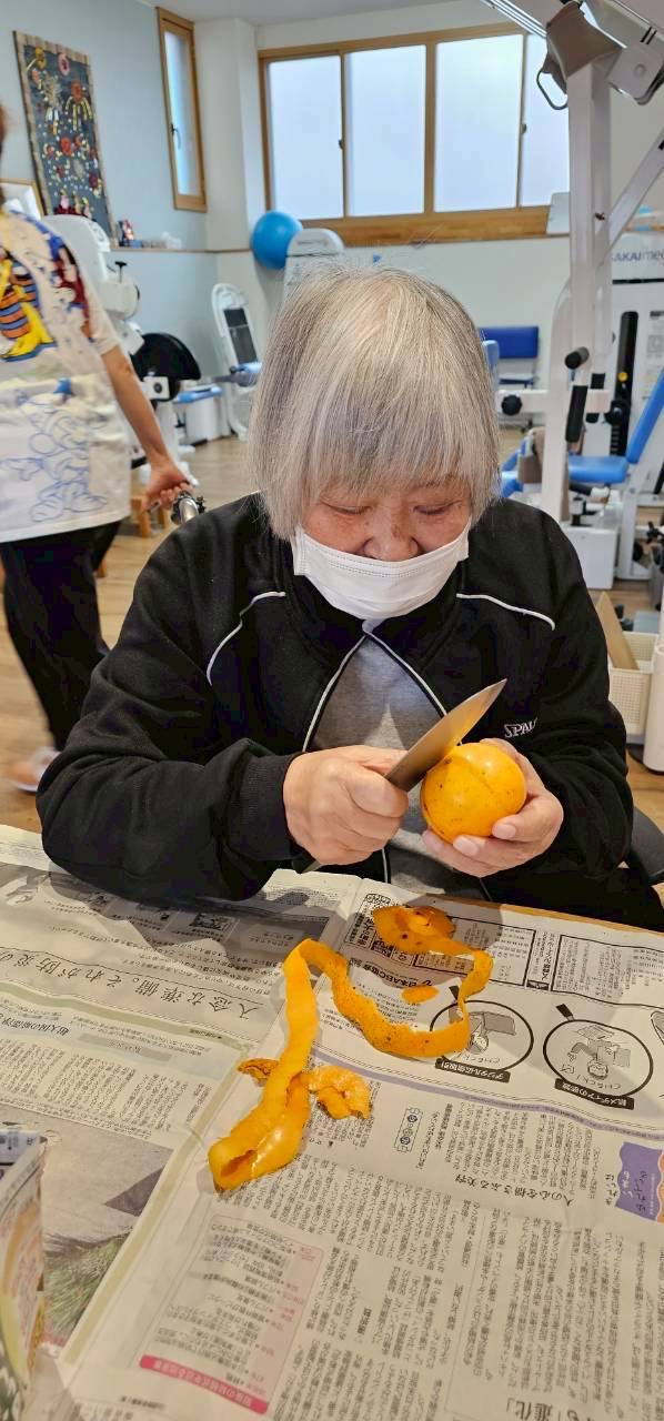 リンゴの様に長く長く剥く方や手慣れた様子でスイスイ剥く方☺