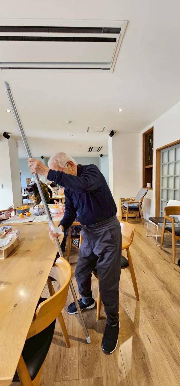 干し竿を拭くのは男性方!!力強くフキフキ!